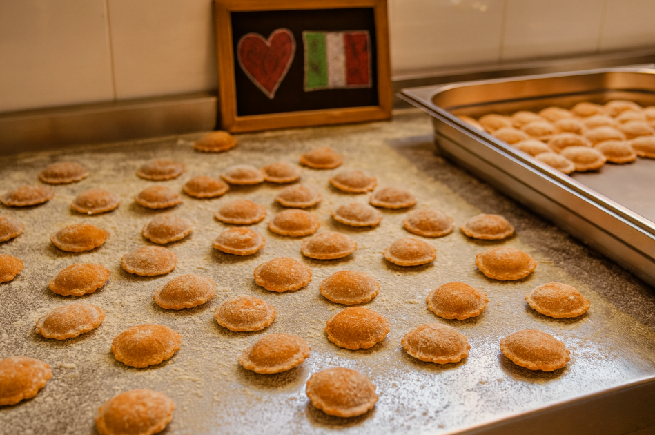 Savourez de généreux tortellones garnis de saumon frais délicatement travaillé, marié à une ricotta onctueuse et relevé d’une touche de ciboulette fraîche. Une farce raffinée et équilibrée, enveloppée dans une pâte fine et fondante, pour un repas élégant et gourmand.